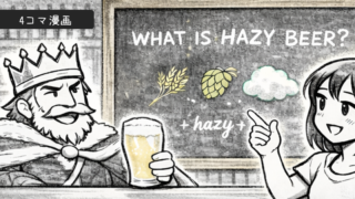 クラフトビールでよく聞く「HAZY(ヘイジー)」とは?4コマ漫画で楽しく紹介。濁りの理由や味わいの特徴を、ビア検3級レベルでやさしく解説します。